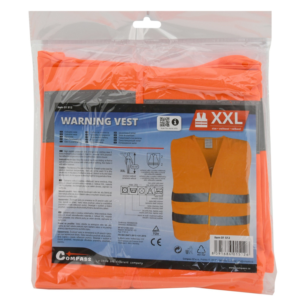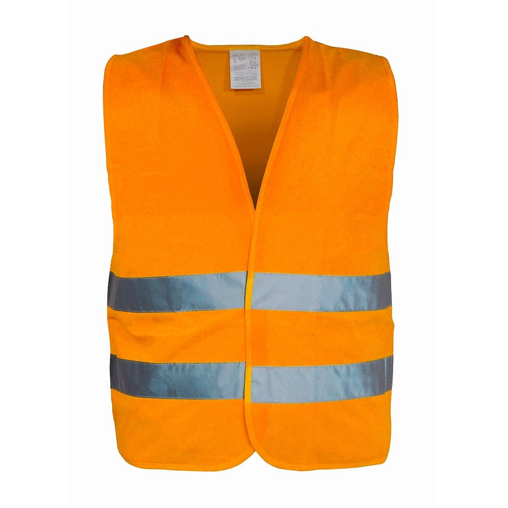 Výstražná reflexní vesta (ochranný oděv s vysokou viditelností) se zapínáním na suchý zip. Dva reflexní pruhy po celém obvodu, žlutá barva.