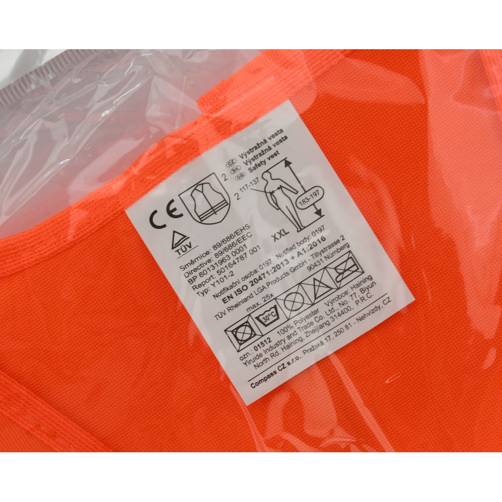 Výstražná reflexní vesta oranžová (ochranný oděv s vysokou viditelností) se zapínáním na suchý zip.