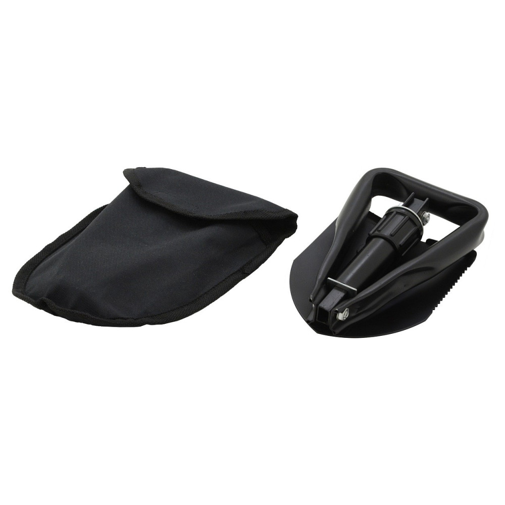 Lopatka má rozměry ve složeném stavu 12 x 19 cm a prodávána je spolu s odolným textilním pouzdrem černé barvy, které lze připevnit za opasek.