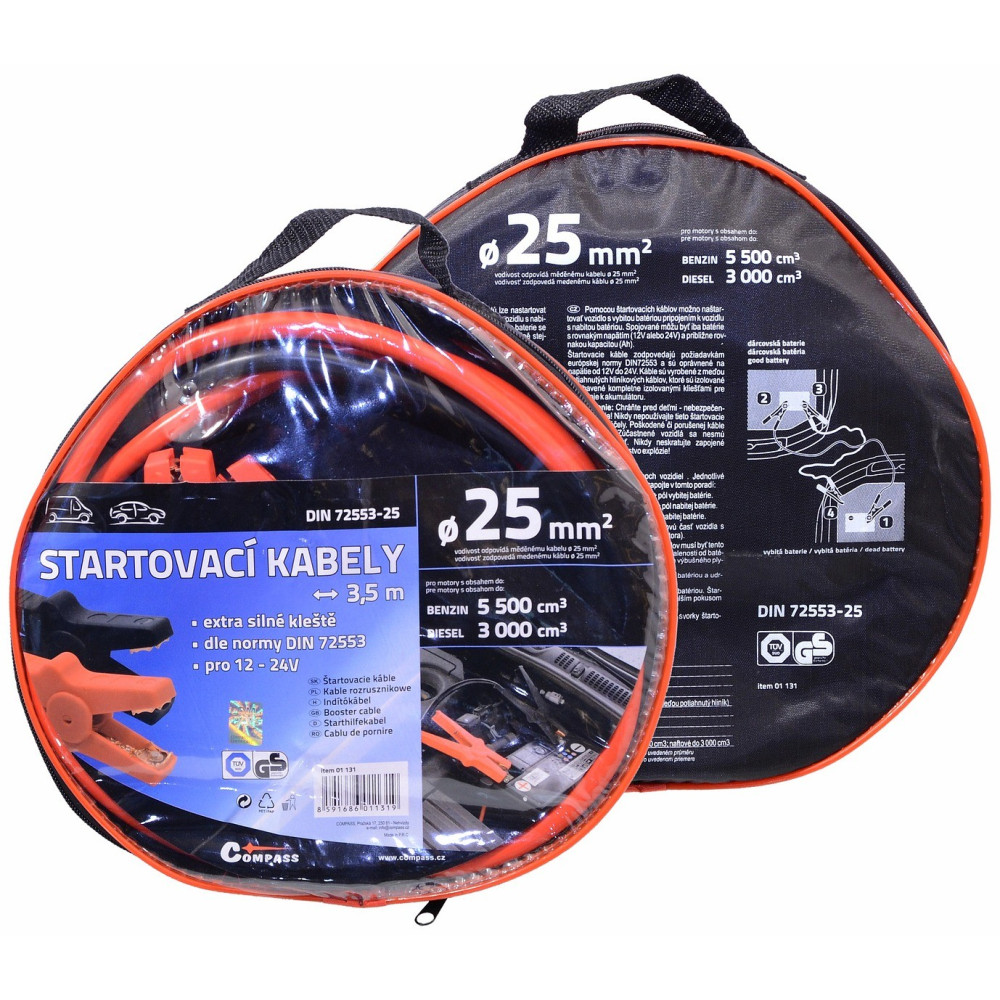 Tyto startovací kabely jsou určeny pro nouzové startování vozidel s benzinovým motorem do objemu 5500 cm3 nebo s naftovým motorem do 3000 cm3. Délka 3,5 metru, vodivostí odpovídá měděnému kabelu o průměru 25 mm2.