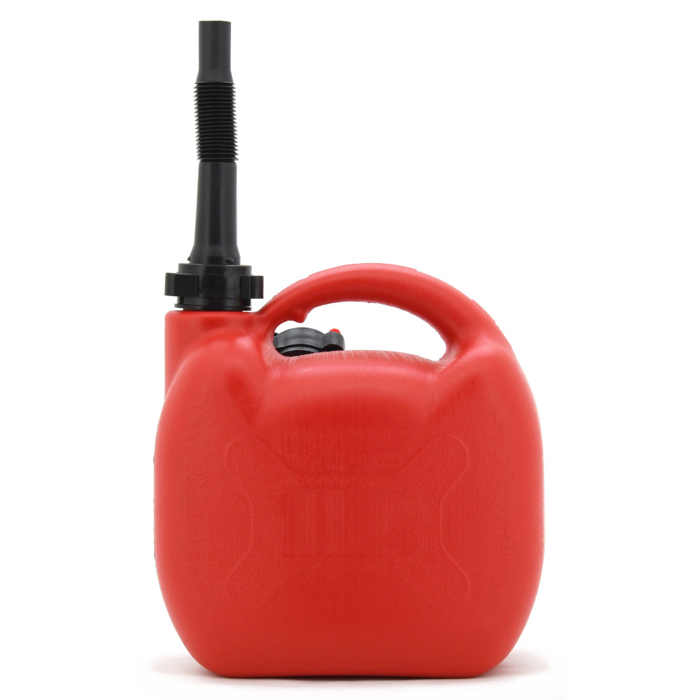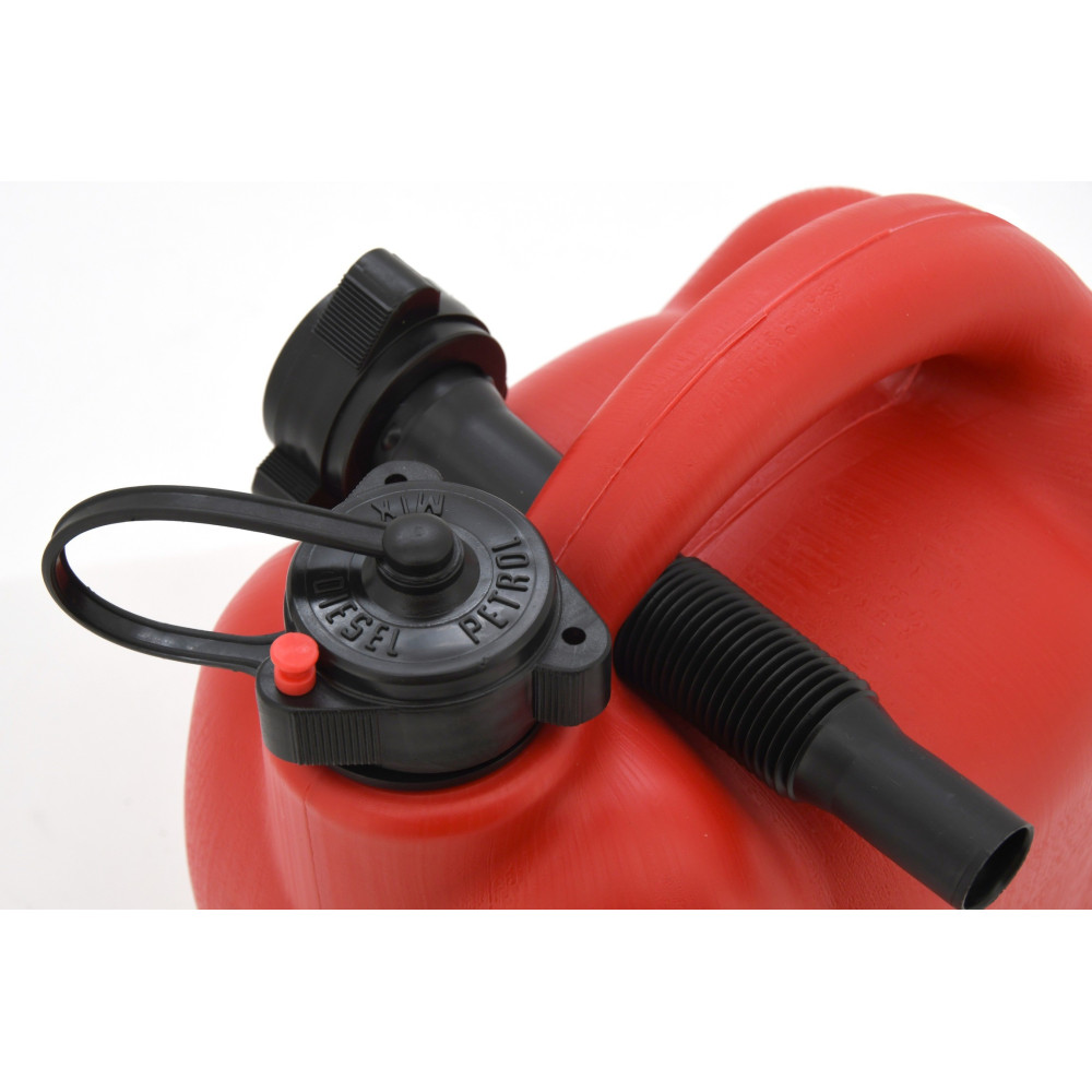 Součástí kanystru je nálevka délky 17 cm, opatřená ohebným krčkem a víčkem, jehož součástí je kolík, se kterým je možné vyznačit druh pohonných hmot (benzín / nafta / směs paliva).