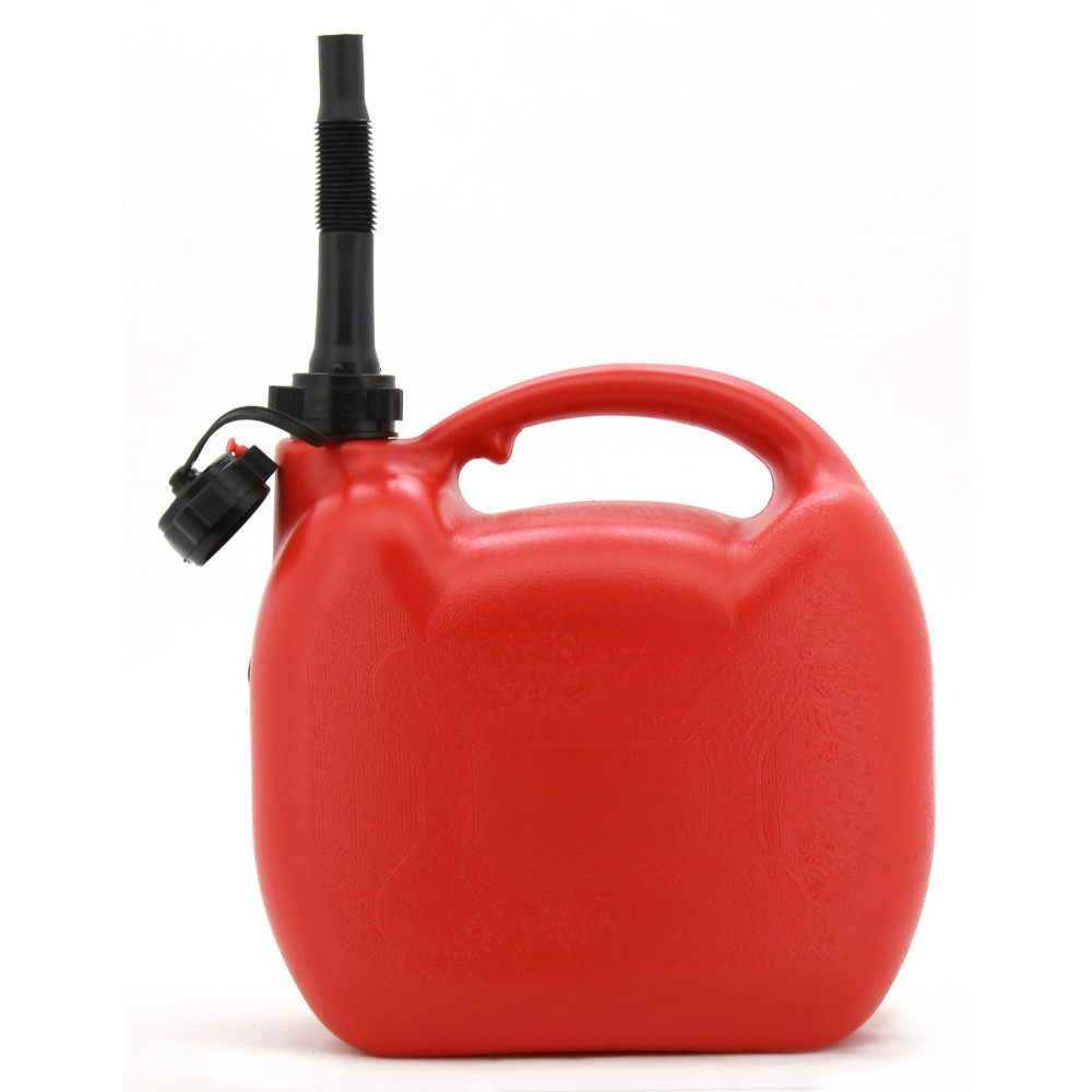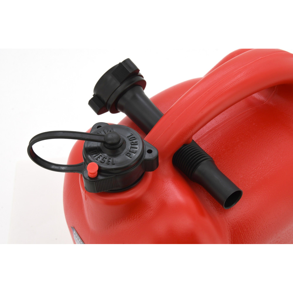 Součástí kanystru je nálevka délky 17 cm, opatřená ohebným krčkem a víčkem, jehož součástí je kolík, se kterým je možné vyznačit druh pohonných hmot (benzín / nafta / směs paliva).