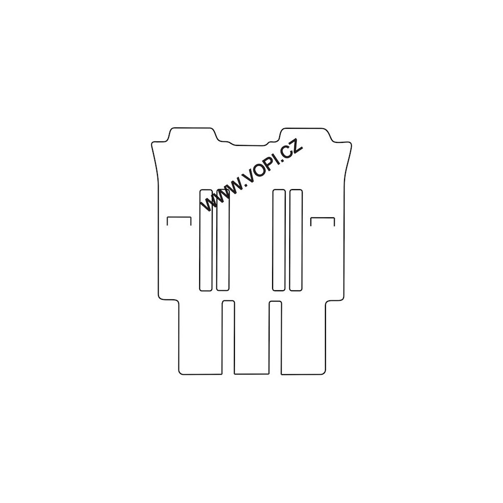Dále lze objednat za 2150,- Kč koberec pod přední sedadla 7 místné verze v tomto tvaru -