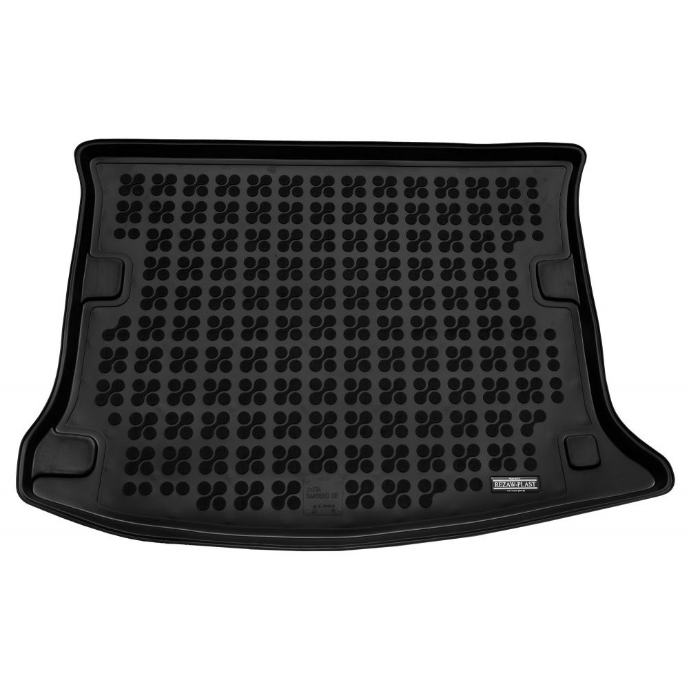 Přesná gumová vana do kufru vozu Dacia Sandero I., od roku 2008 - 2012. Autokoberec je vyroben z kvalitní gumové směsi s výškou okraje 28mm.