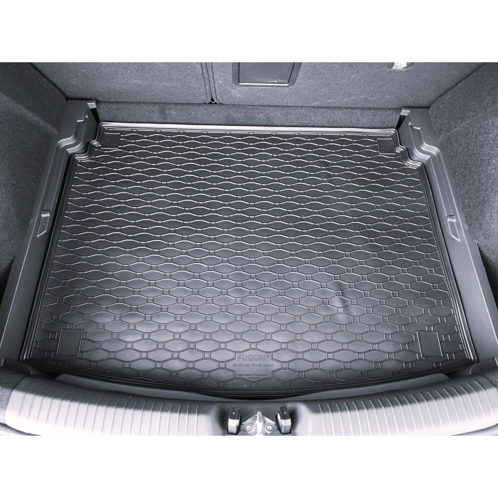 Přesný gumový autokoberec do kufru vozu Hyundai I 30, od roku 2017, hatchback. Autokoberec je vyroben z kvalitní gumové směsi v České republice.