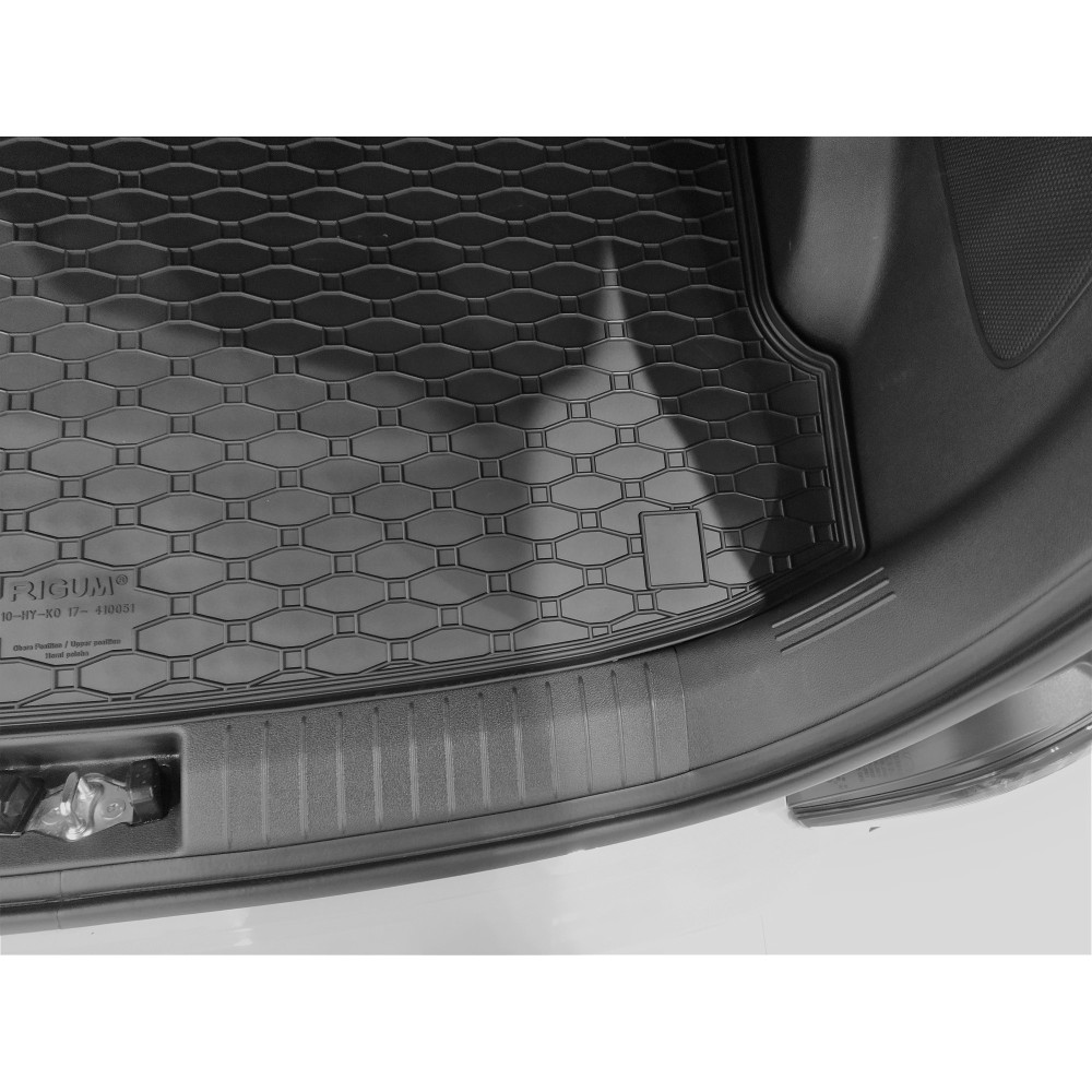 Přesný gumový autokoberec do kufru vozu Hyundai Kona, od roku 2017 - 2023, horní podlaha. Autokoberec je vyroben z kvalitní gumové směsi v České republice.