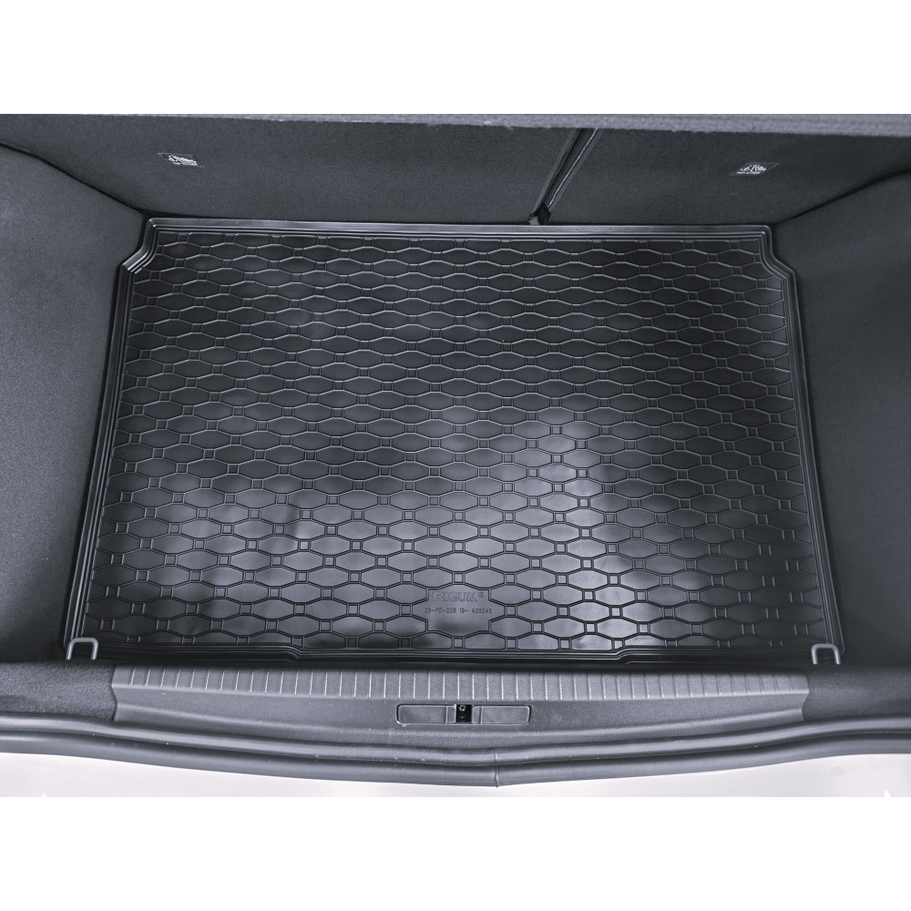 Přesný gumový autokoberec do kufru vozu Peugeot 208, od roku 2019. Autokoberec je vyroben z kvalitní gumové směsi v České republice.