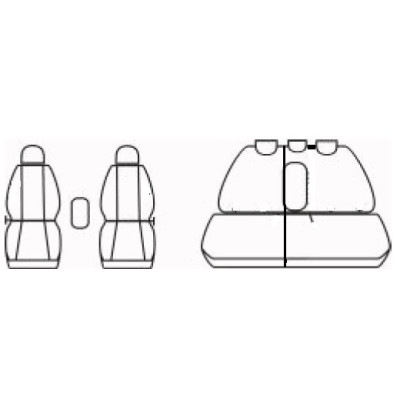 Potahy předních sedadel. Zadní opěradlo a sedadlo dělené, se zadní loketní opěrkou nebo bez zadní loketní opěrky - označte v objednávce žádanou variantu u "Přidat do košíku", přední loketní opěrka, 5 opěrek hlavy, zipy na kapsy.