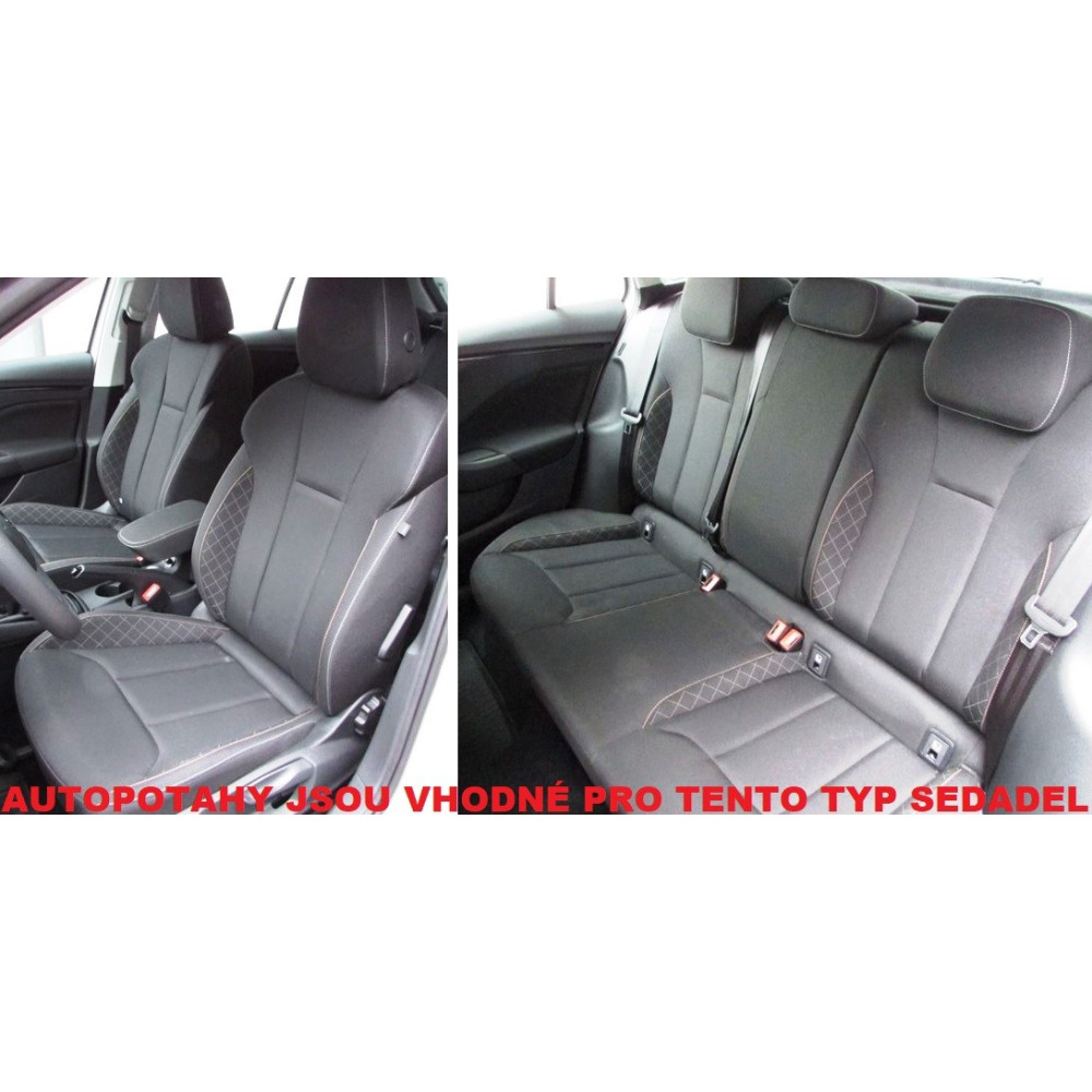Na ilustrační fotografii je vyfocena sedačka z auta Škoda Octavia II. Vzhledem k tomu, že auta mají různá sedadla a autopotahy jsou šité přesně dle tvaru sedaček v konkrétním autě, potahy pro Váš vůz se můžou od ilustrační fotky tvarově lišit. Při výrobě a zpracování střihů pro konkrétní auto je vždy přihlíženo k původním švům a tvarům sedadel a k tomu, aby výsledný efekt byl co nejlepší z estetického a funkčního hlediska.
