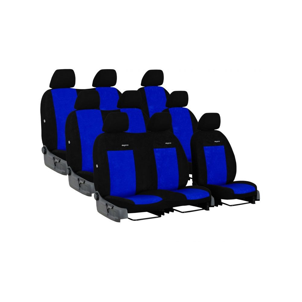 Velmi kvalitní autopotahy z čalounické látky včetně zadní části opěradel. Materiál textilní Alcantara. Výšivka ELEGANCE.
