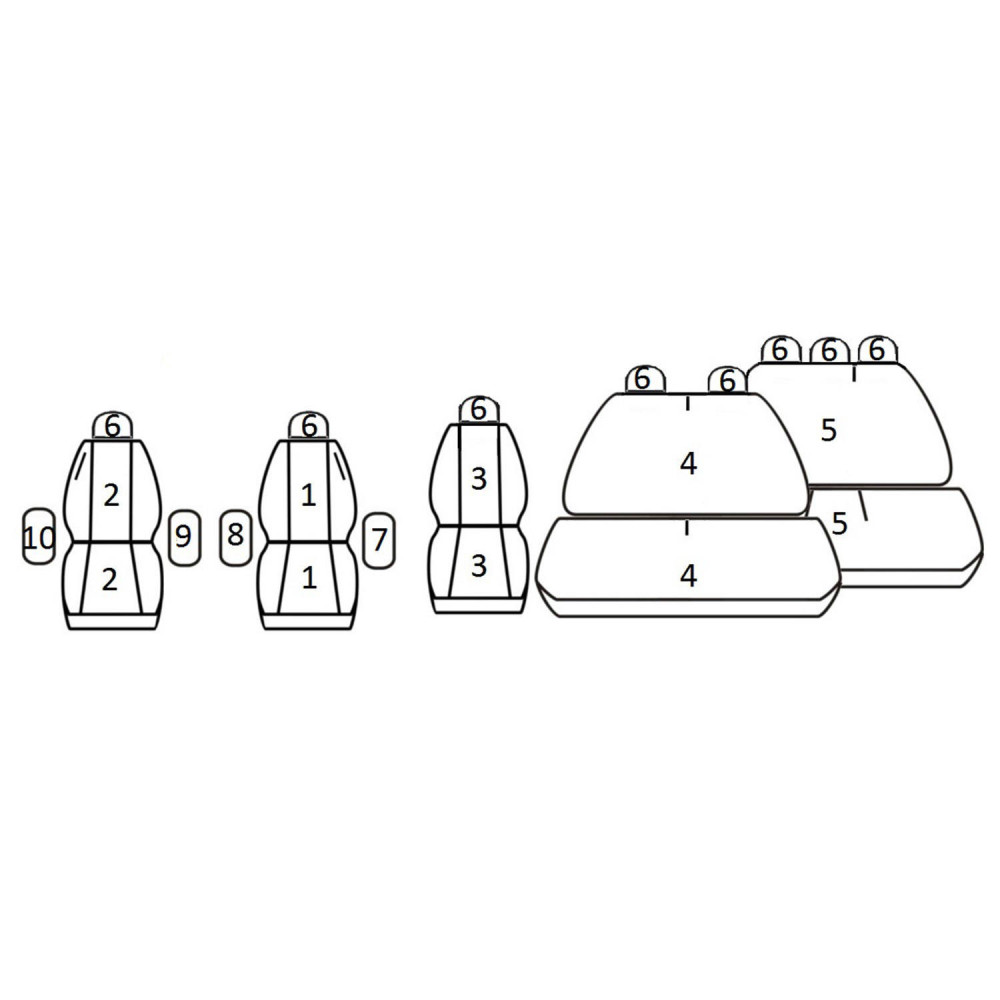 Sada autopotahů na celé auto včetně povlaků hlavových opěrek. Vhodné pro auta s bočními airbagy, ale lze použít i pro auto, které boční airbag nemá (specialní šev).