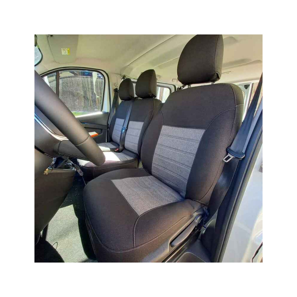 Autopotahy na míru, model UNIQUE, barva šedá/černá na Volkswagen Transporter T4, T5, T6, 1 místo...