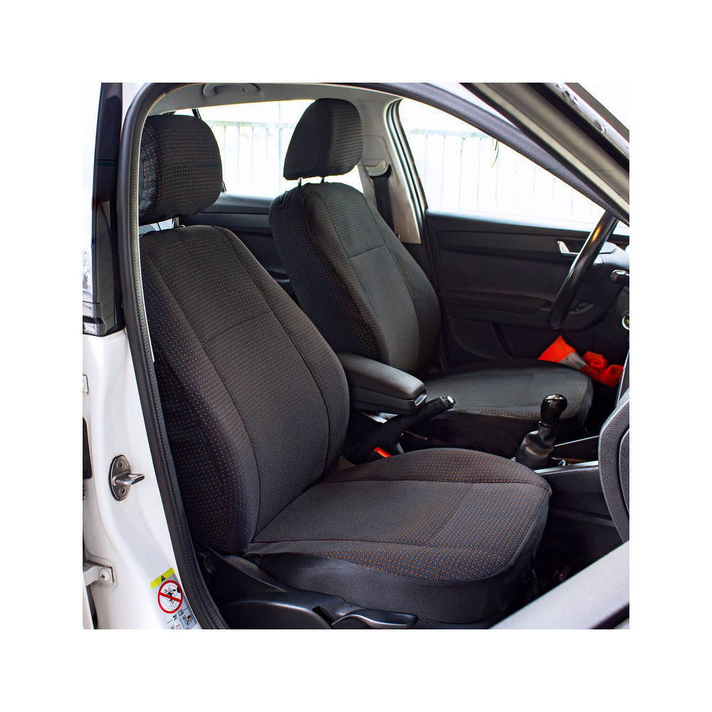Univerzální autopotahy pro přední sedadla. Látka s žakárovým prošíváním. Vhodné pro téměř všechna sériově vyráběná vozidla. Kompatibilní s bočními airbagy. Včetně opěrek hlavy. Střih Lima. Vyrobeno v ČR.