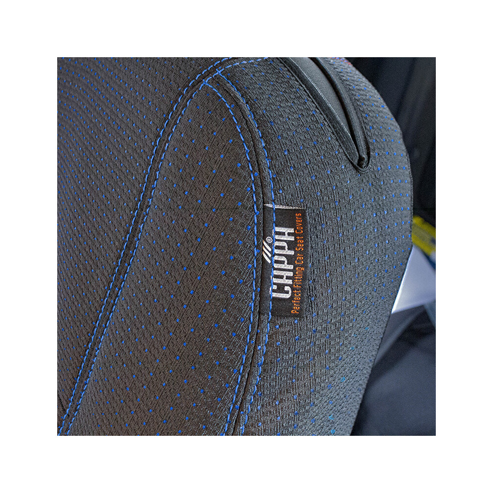 Potahy mají po horní části otvor se suchým zip pro opěrky hlavy. Pro instalaci potahů není nutné odnímat přední opěrky hlavy.Spodní část boku sedadel má panel se suchým zipem, který umožní obejmutí spodní sklápěcí páčky.