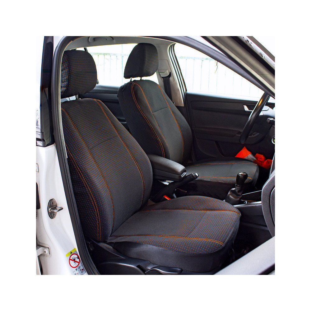 Univerzální autopotahy pro přední sedadla Mito Lima Luxury barva oranžová. Látka s žakárovým prošíváním. Vhodné pro téměř všechna sériově vyráběná vozidla. Kompatibilní s bočními airbagy. Včetně opěrek hlavy. Střih Lima. Vyrobeno v ČR. Okrasné, dvojité štepování.