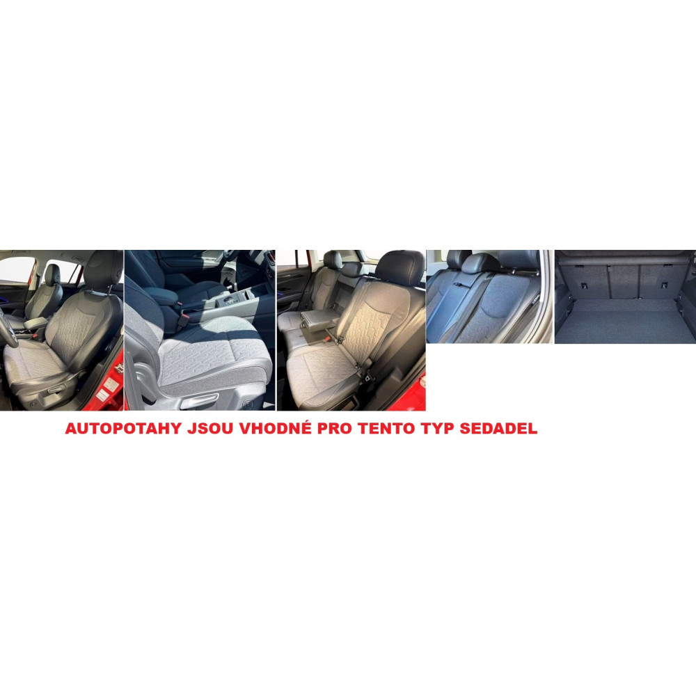 Mapa sedadel nemusí odpovídat přesně tvarům sedadel a opěrek ve vašem vozidle, je hlavně pro ověření dělení sedadel a výbavy ve vozidle. Na fotografiích je většinou ukázkové sedadlo s nabízeným potahem z jiného vozu.