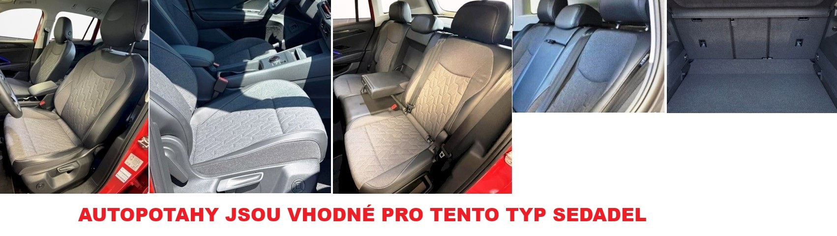 Mapa sedadel nemusí odpovídat přesně tvarům sedadel a opěrek ve vašem vozidle, je hlavně pro ověření dělení sedadel a výbavy ve vozidle. Na fotografiích je většinou ukázkové sedadlo s nabízeným potahem z jiného vozu.