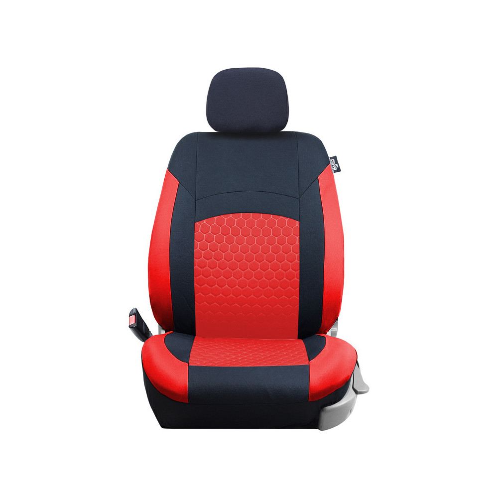 Potahy předních sedadel mají po horní části zip pro opěrky hlavy, který vede až k bokům pro použití se sklápěcími páčkami. Pro instalaci potahů není nutné odnímat přední opěrky hlavy.Spodní část boku sedadel má panel se suchým zipem, který umožní obejmutí spodní sklápěcí páčky.