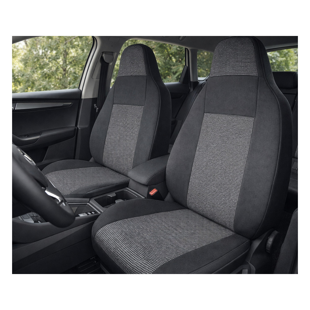 Autopotahy Perfetto pro Škoda Kodiaq RS (přední sedadla, 2 místa). Semi-speciál z polyesteru s pěnovou výplní pro vyšší komfort. Pro sedadla s integrovanými opěrkami hlavy, homologované pro boční airbagy, kompatibilní se standardními funkcemi.