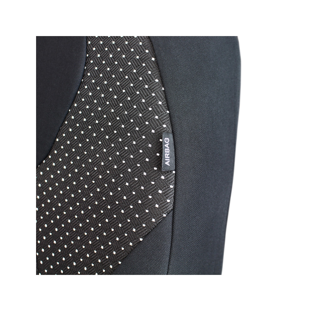 Autopotahy neklouzají po sedadle díky měkkému molitanu na vnitřní straně potahu. Středové části jsou vyrobeny z prošívané polyesterové tkaniny v Žakárovém stylu s dodatečným polstrováním. Boky a záda z elastického polyesteru.