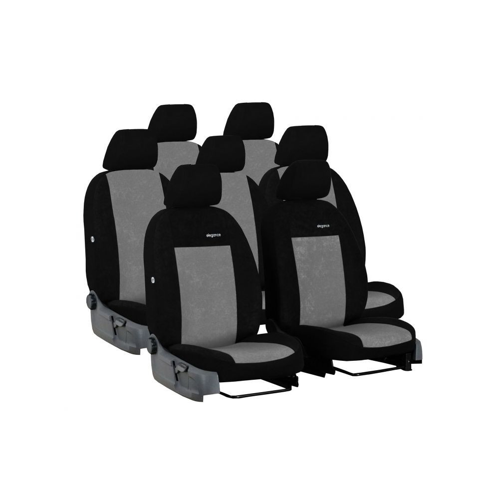Velmi kvalitní autopotahy z čalounické látky včetně zadní části opěradel. Materiál textilní Alcantara. Výšivka ELEGANCE.