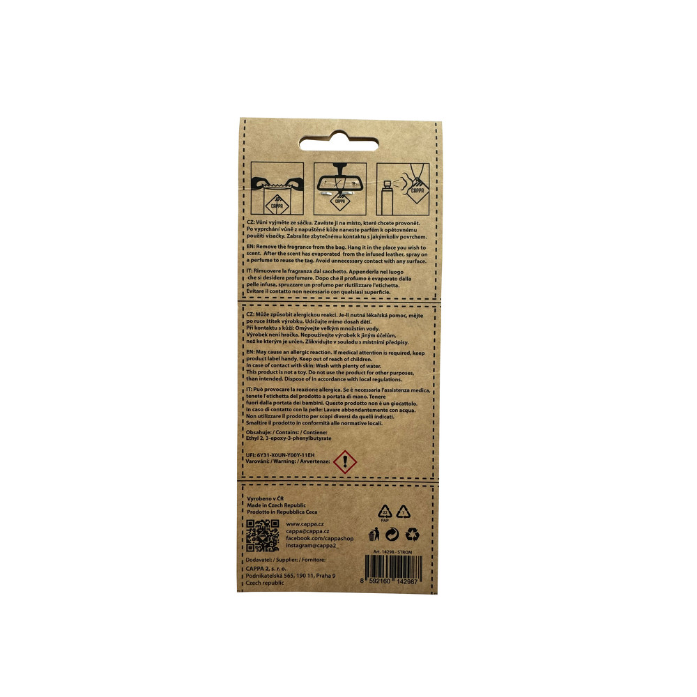Přineste do svého automobilu nebo domácnosti nádech luxusu s naší originální vůní do auta Aroma Leather Tree Cherry vyrobenou z pravé hovězí kůže. Tento designový osvěžovač je nejen účinný, ale také stylový doplněk, který zaujme každého, kdo hledá kvalitu a dlouhotrvající vůni.