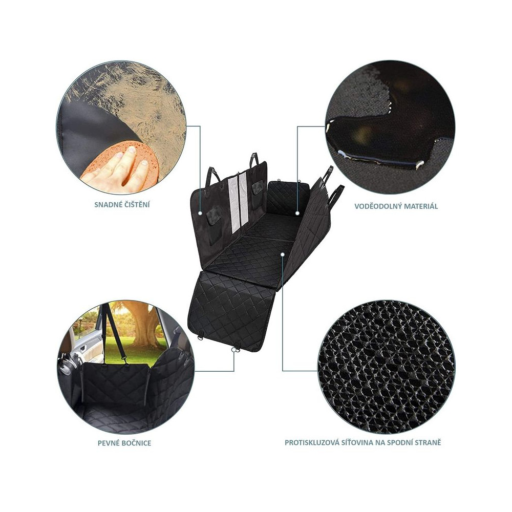 Autopotah pro ochranu zadních sedaček a dveří při přepravě domácích mazlíčků, nářadí, materiálu a mnoha dalších věcí, které mohou znečistit interiér Vašeho automobilu. Podložka je vyrobena z kvalitních nepropustných materiálů, tudíž nehrozí nebezpečí ušpinění sedaček a dveří. Rub podložky je vyroben z protiskluzové síťoviny.