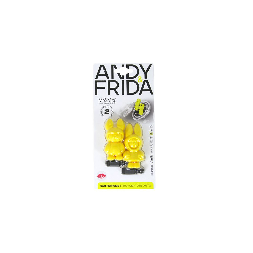 Andy & Frida jsou osvěžovače vzduchu do auta navrženy umělkyní Rumiko Takeda inspirovanou Metaverse a krypto uměním. Je vyroben z EVA - termoplastického polymeru (měkké pryže) a při kontaktu se vzduchem vypouštěným ventilačním otvorem automobilu uvolňuje příjemnou vůni.