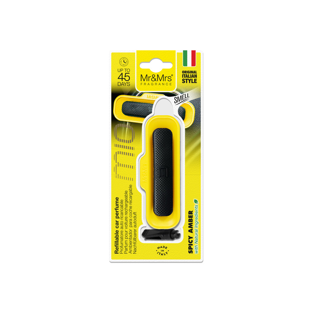 Osvěžovač vzduchu do automobilu s vůní kořeněné ambry ve tvaru elegantního obdélníku. Eliminuje nepříjemné zápachy, snadno se upevní a zajišťuje dlouhotrvající svěžest. Vyměnitelná náplň.