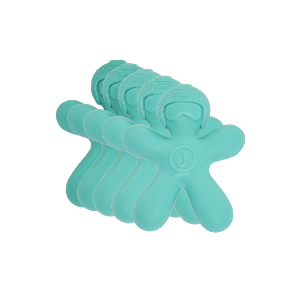 Osvěžovač vzduchu do automobilu ve tvaru sympatického panáčka. Eliminuje nepříjemné zápachy, snadno se upevní a zajišťuje dlouhotrvající svěžest. Květinová, ovocná, bílé květy, sladká vůně. Výdrž až 50dní. Sada 5ti kusů
