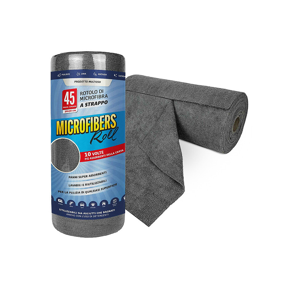 Superabsorbční utěrky z mikrovlákna v praktické, odtrhávací roli po 45 ks. Utěrky lze prát a opakovaně používat až 50krát. Účinně čistí za sucha i za mokra.