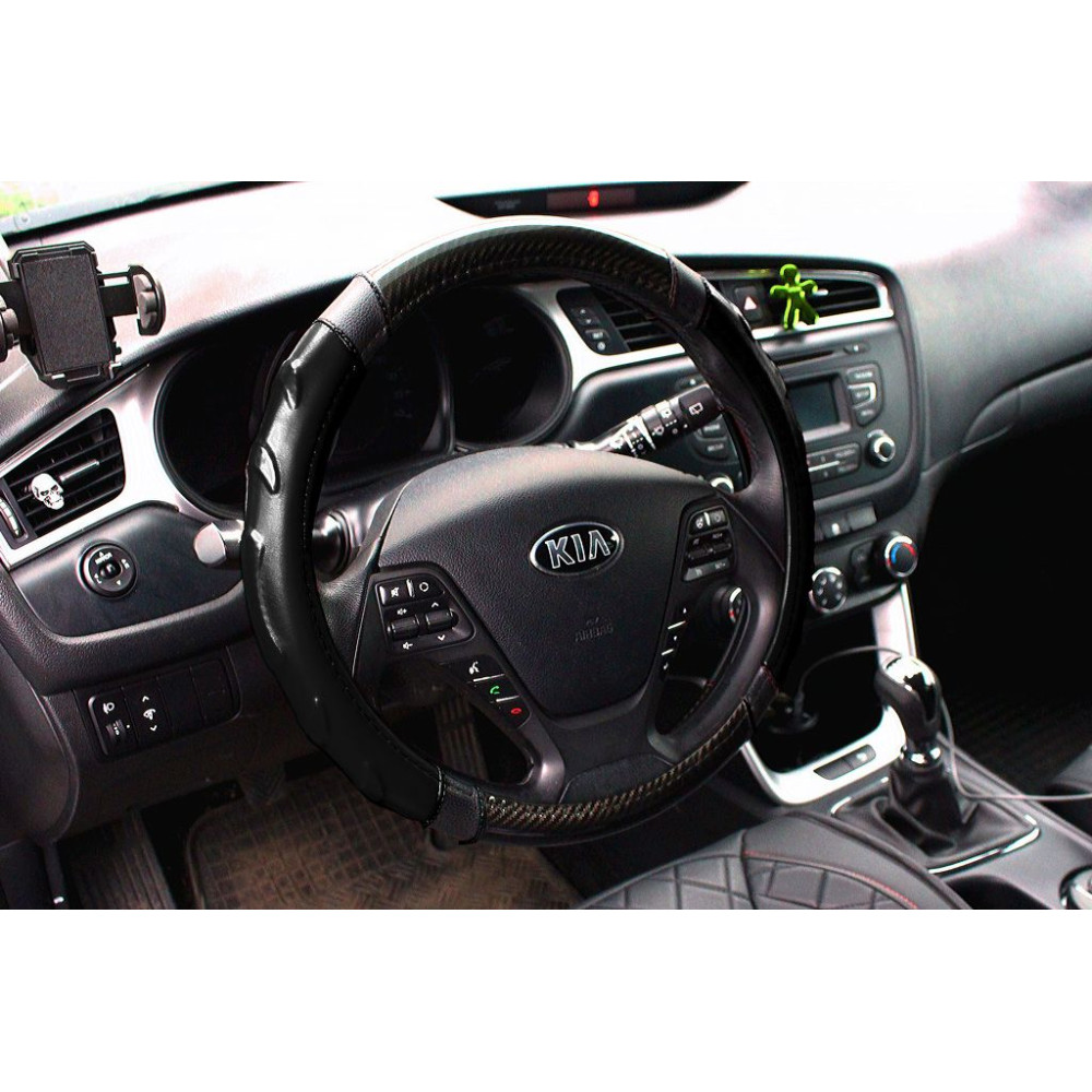 Elegantní potah na volant s protiskluzovou vrstvou pro průměry 37–39cm. Koženkový s pryží. PVC jádro.