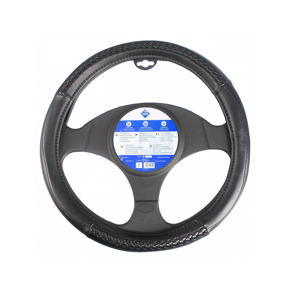 Potah na volant pro volanty o průměru 37–39cm. Materiál: koženka se zdrsněním. PVC jádro.