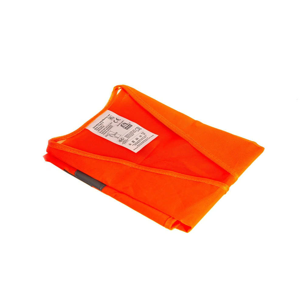 Výstražná reflexní vesta oranžová (ochranný oděv s vysokou viditelností). Součást povinné výbavy vozidla.
