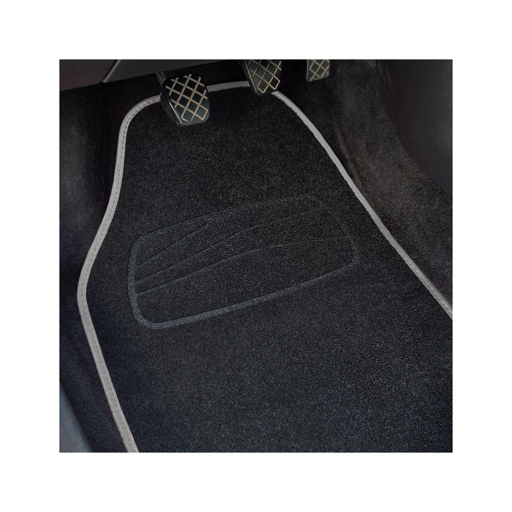 Sada 4 ks univerzálních textilních koberečků se zdrsněním. Barevné obšití, zdrsnění pod pedály. Ochrání podlahu před znečištěním a opotřebením.