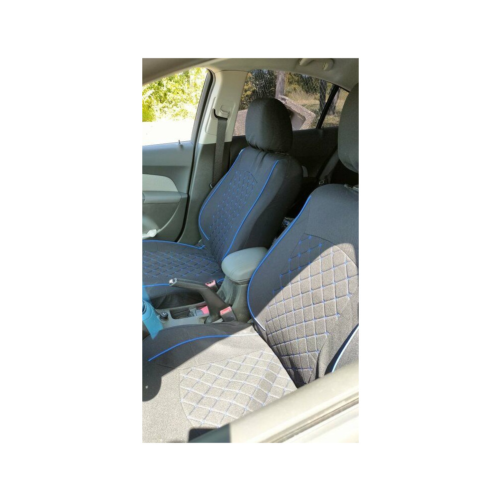 Autopotahy neklou­zají po sedadle díky měkkému molitanu na vnitřní straně potahu. Střed a lemování  jsou vyrobeny z  polyesterové tkaniny. Boky a záda z elastického polyesteru.