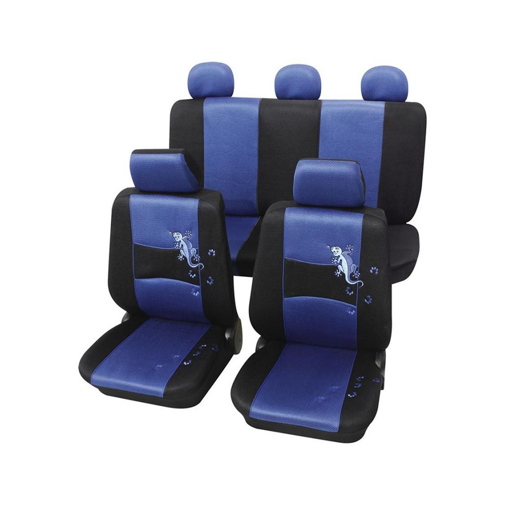 Univerzální autopotahy Gecko vhodné do vozidel s nedělenými zadními sedačkami i dělenými sedačkami v poměru 1/3 na obě strany.