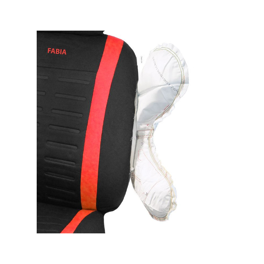 Autopotahy s výšivkou FABIA jsou vyrobeny a certifikovány atestem pro použití na sedadla vozidel i s bočními airbagy. V případě vystřelení airbagu se roztrhne speciálně ušitý šev na boční straně autopotahu. Lze použít na vozy FABIA I, II, III