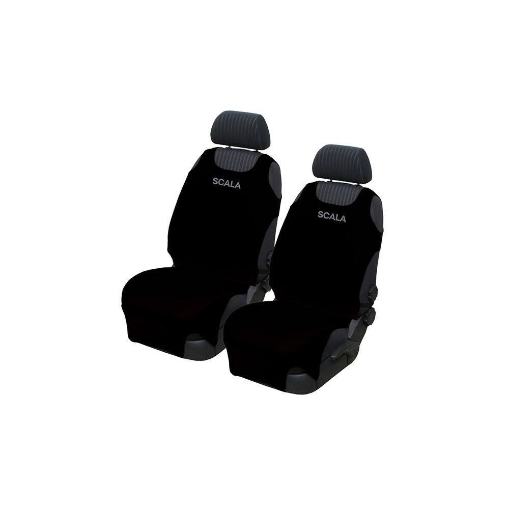 Autotrika s výšivkou SCALA. Univerzální autotrika pasují na všechny typy předních sedadel včetně těch s přední loketní opěrkou i s typy vozidel s bočními airbagy.