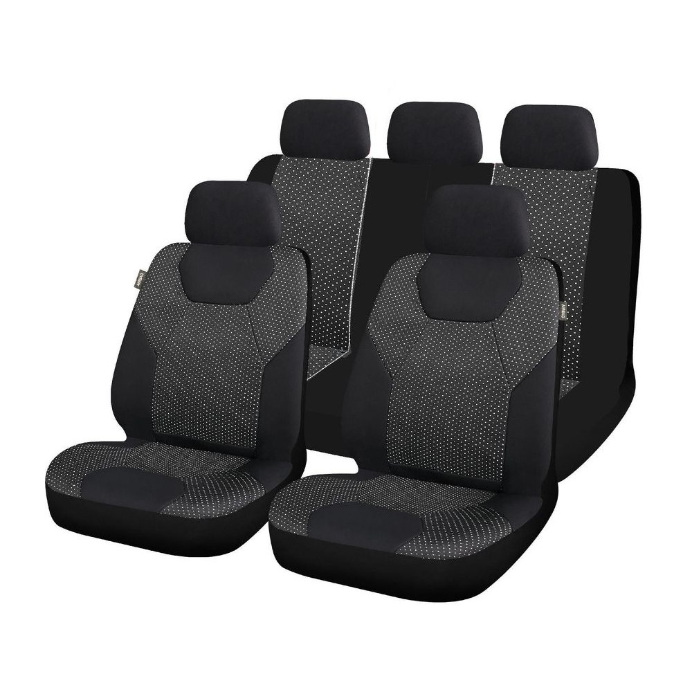 Univerzální autopotahy Geneva, sada pro 5 sedadel, střih LIMA. Prošívaný polyester. Pro dělitelná zadní sedadla v poměru 1/3. Včetně opěrek hlavy, homologováno pro boční airbagy. Vhodné pro sklopná sedadla, zadní loketní opěrku a 3. bezp. pás.