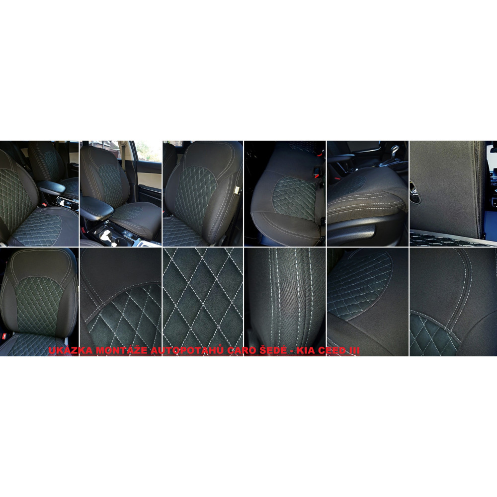 Na ilustrační fotografii je vyfocena sedačka z auta Škoda Octavia II. Vzhledem k tomu, že auta mají různá sedadla a autopotahy jsou šité přesně dle tvaru sedaček v konkrétním autě, potahy pro Váš vůz se můžou od ilustrační fotky tvarově lišit. Při výrobě a zpracování střihů pro konkrétní auto je vždy přihlíženo k původním švům a tvarům sedadel a k tomu, aby výsledný efekt byl co nejlepší z estetického a funkčního hlediska.