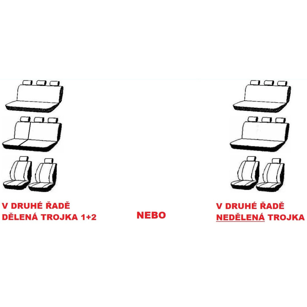Pokud konfigurace sedadel a výbavy není totožná s vaším vozidlem, zadejte prosím dotaz zda je možná změna. Lze také zadat objednávku a do poznámky zadat požadovanou změnu, v nejhorším to nebude možné a navrhneme náhradní řešení. Objednávka nebude samozřejmě v takovém případě platná.