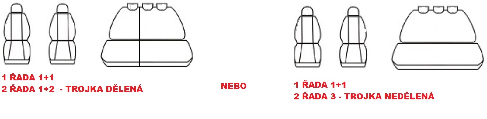 Pokud konfigurace sedadel a výbavy není totožná s vaším vozidlem, zadejte prosím dotaz zda je možná změna. Lze také zadat objednávku a do poznámky zadat požadovanou změnu, v nejhorším to nebude možné a navrhneme náhradní řešení. Objednávka nebude samozřejmě v takovém případě platná.