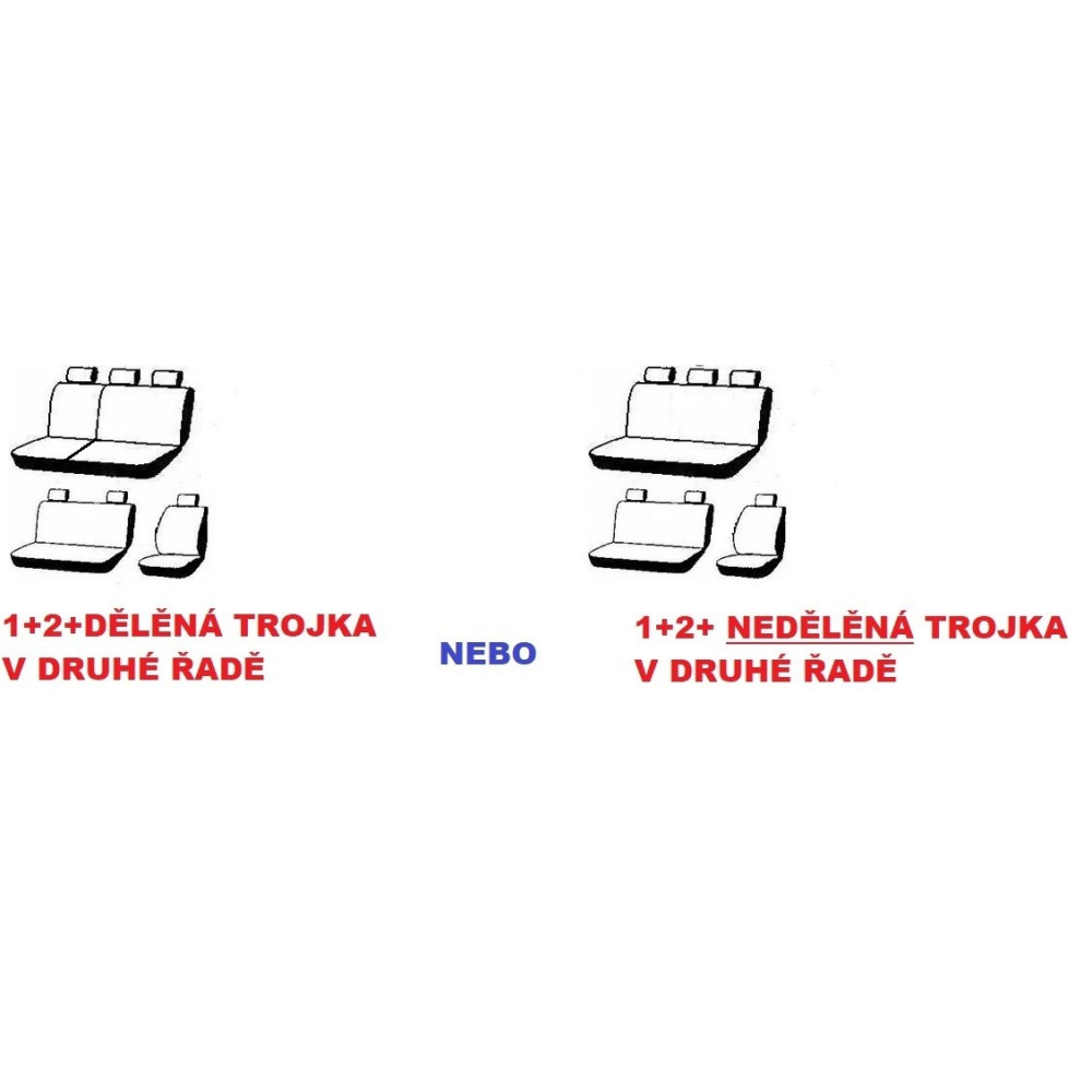 Pokud konfigurace sedadel a výbavy není totožná s vaším vozidlem, zadejte prosím dotaz zda je možná změna. Lze také zadat objednávku a do poznámky zadat požadovanou změnu, v nejhorším to nebude možné a navrhneme náhradní řešení. Objednávka nebude samozřejmě v takovém případě platná.