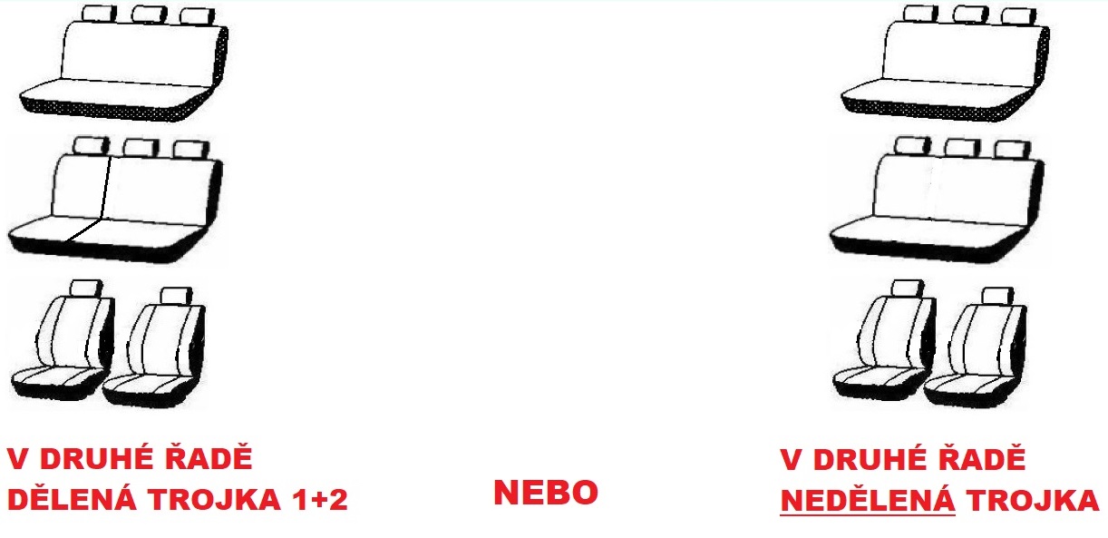 Pokud konfigurace sedadel a výbavy není totožná s vaším vozidlem, zadejte prosím dotaz zda je možná změna. Lze také zadat objednávku a do poznámky zadat požadovanou změnu, v nejhorším to nebude možné a navrhneme náhradní řešení. Objednávka nebude samozřejmě v takovém případě platná.